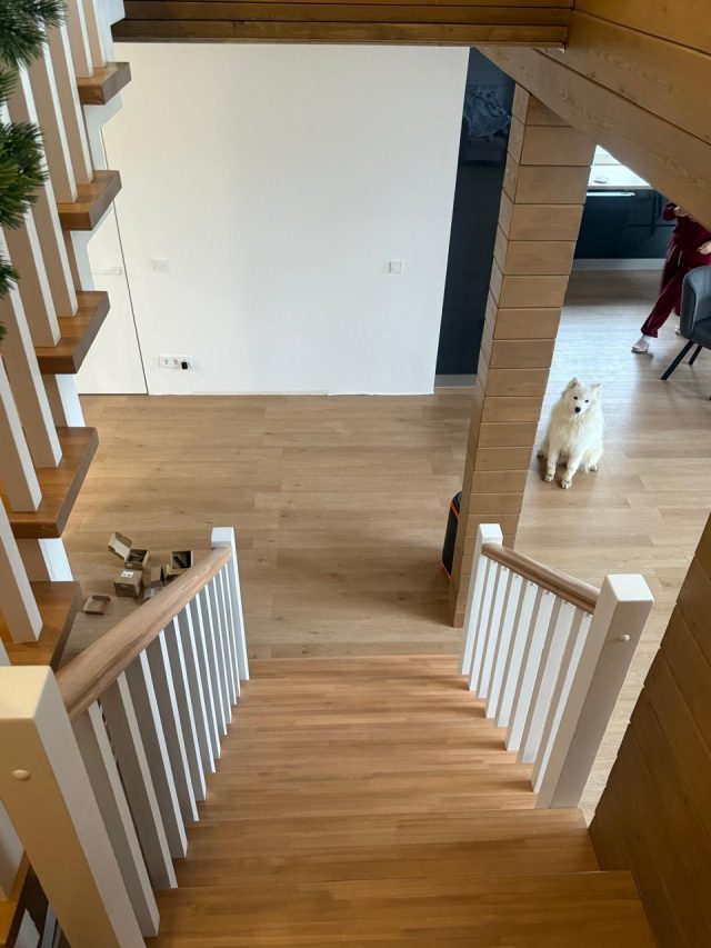 Фотографии лестницы сделаны после изготовления и монтажа в частном доме в городе Истра.