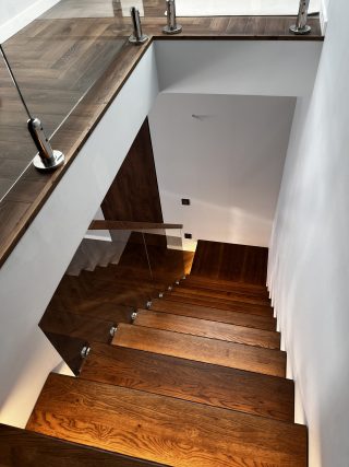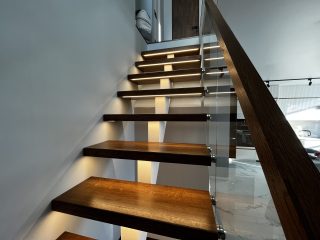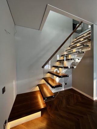 Лестница на металлическом каркасе со стеклом