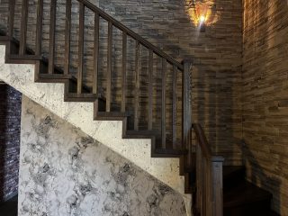 Облицовка бетонной лестницы с поворотом на 180 градусов. Выполнена полная...
