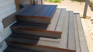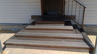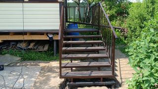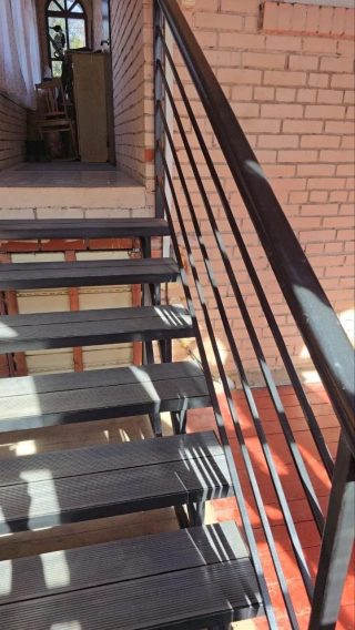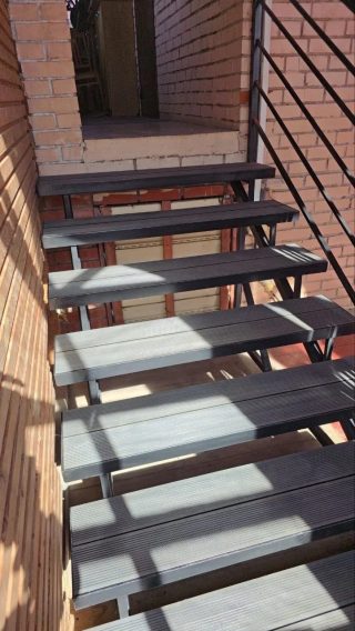 Уличная лестница со ступенями из ДПК. Каркас — металлический из...